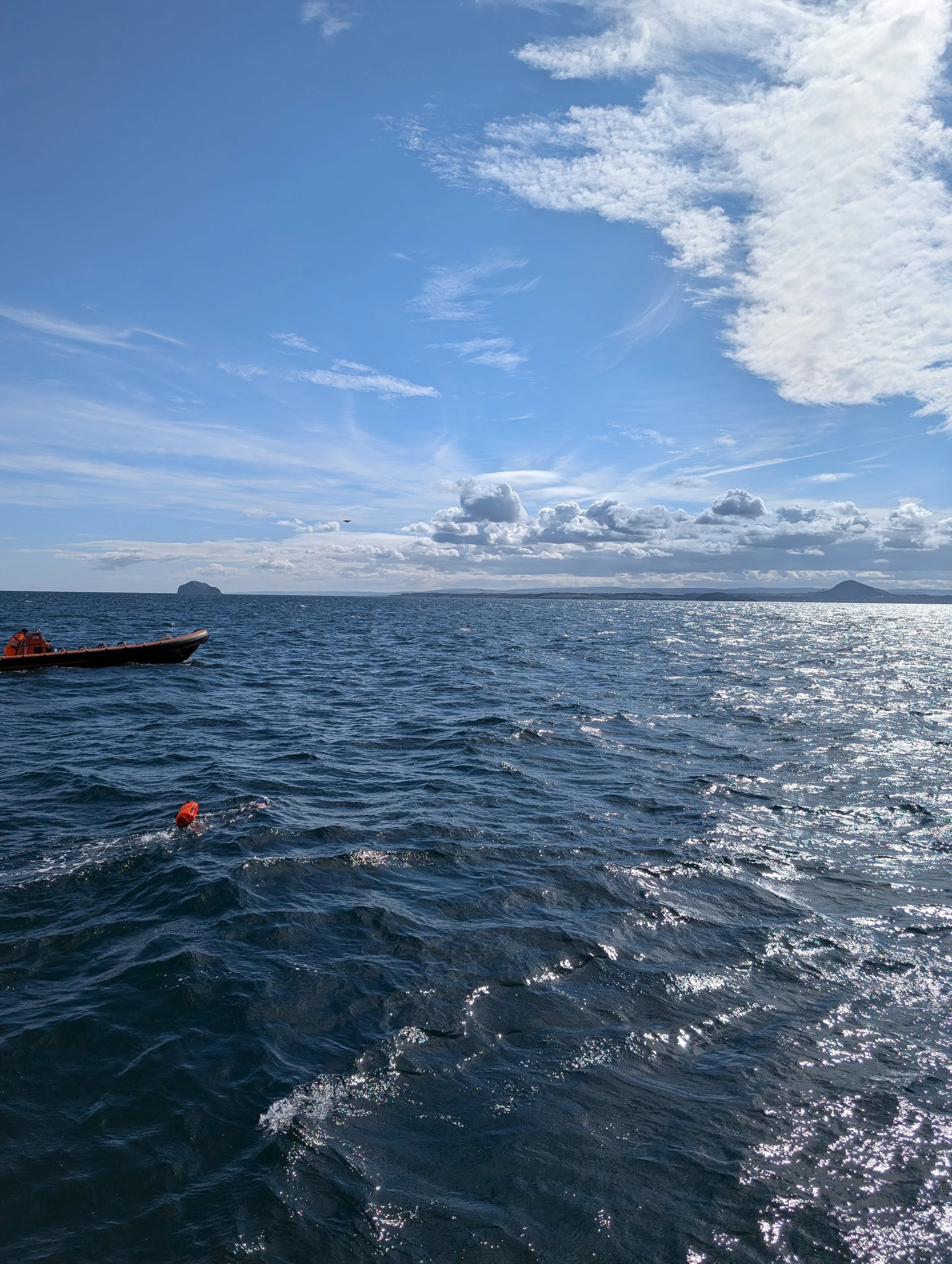 In September 2024, I completed a solo 11 mile swimming marathon across the Firth of Forth from Elie to North Berwick. I was supported by Forth Logistics with a boat and crew, alongside my support team. This experience pushed me out of my comfort zone and helped me set new personal life-ambitions.
